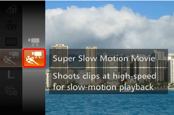 ⋗ buttons or turn the ⋖Control dial⋗ to choose [Super Slow Motion Movie], and then press the ⋖FUNC./SET⋗ button (