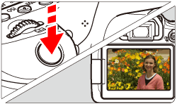 4. Press the ⋖⋗ button to display the Live View image on the LCD monitor.