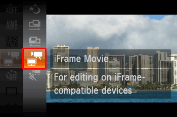 Operate the ⋖directional button⋗ up or down to select [iFrame Movie] or [Super Slow Motion Movie]. (In this case, [iFrame Movie] is selected.)