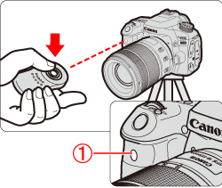 With Remote Controller RC-6 (sold separately), you can shoot remotely up to approx. 5 meters/16.4 feet away from the camera. You can either shoot immediately or with a 2-sec. delay.