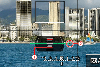An electronic level can be displayed as a guideline to ensure the camerais level from front to back and left to right.