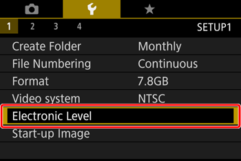 An electronic level can be displayed on the screen when shooting as a guideline to determine if the camera is level.