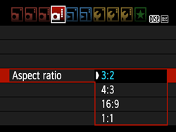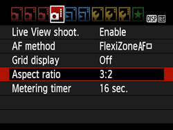 In ⋖P⋗⋖Tv⋗⋖Av⋗⋖M⋗, the camera’s aspect ratio for images can be changed during Live View shooting.