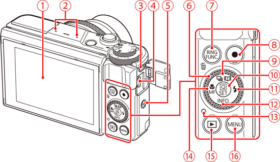 | Zoom lever Shooting : [ Playback : [ | Speaker | ||