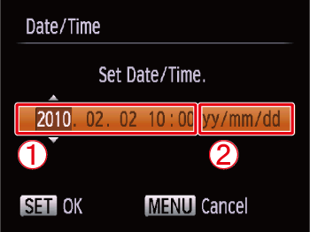 When you turn on the camera for the first time after purchase, the [Date/time] settings screen appears.