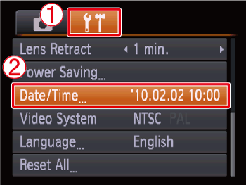 Operate the ⋖directional buttons⋗ up or down to select [Date/time].