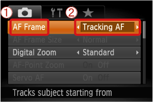 Operate the ⋖directional buttons⋗ left or right to select the [Tracking AF].