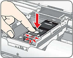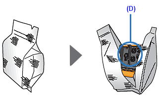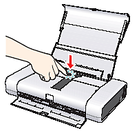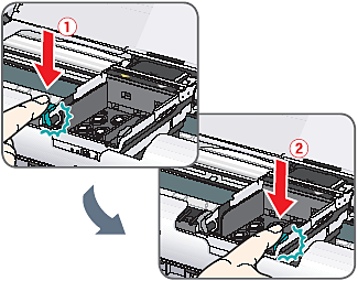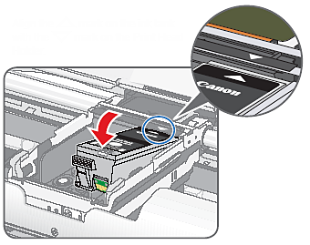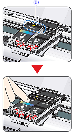 If the front (innermost) part of the ink tank(D) is sticking up, push down on the Canon logo on the ink tank as illustrated below. Do not remove the ink tank forcibly.