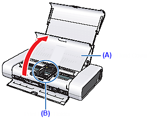 1. Open the Print Head Cover(A). The Print Head Holder(B) moves to the center.