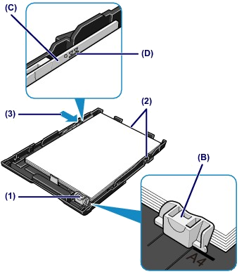 (1) Slide the paper guide (B) to align with the mark of page size.