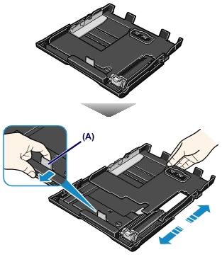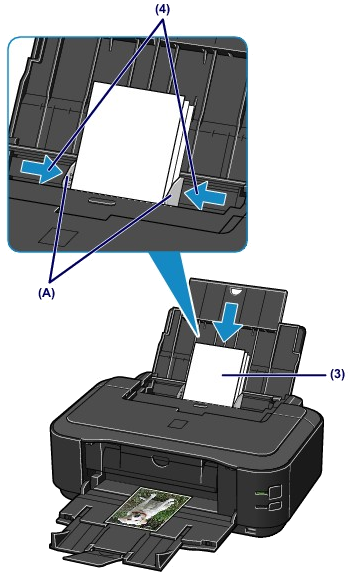 (4) Slide the paper guides (A) to align them with both sides of the paper stack.