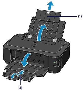 (2) Open the paper output tray gently, and extend the output tray extension to open.