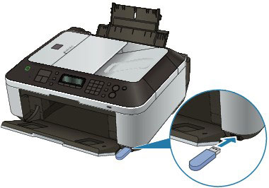 Make sure that the USB flash drive is correctly oriented before inserting it straightforward into the Direct Print Port.