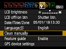 If a smudge that cannot be removed with a blower remains, having the sensor cleaned by a Canon Service Center is recommended.
