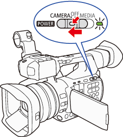 1. Hold down the button on the ⋖POWER⋗ switch and slide the switch to ⋖CAMERA⋗.