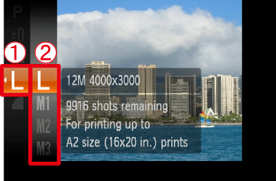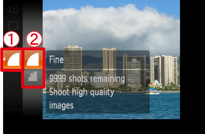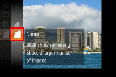*The two levels of compression ratios (in order of lowest to highest) and image quality (in order of highest to lowest) are :[Fine] (), and [Normal] (