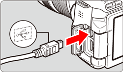6. Connect the cable to the camera’s [DIGITAL] terminal with the cable plug’s [ ] icon facing the front of the camera.