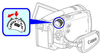 Holding the lock button pressed down, set the ⋖ ⋗ switch to CAMERA or PLAY.