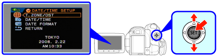 4. Select ⋖ ⋗ [DATE/TIME SETUP] and press ⋖