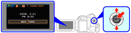 5. Select ⋖ ⋗ [T.ZONE/DST] and press ⋖