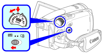 1. Holding the lock button pressed down, set the ⋖ ⋗ switch to CAMERA.