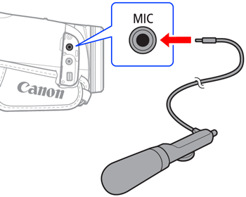 You can also use commercially available microphones not compatible with the advanced accessory shoe, by connecting the external microphone to the MIC terminal. Use commercially available condenser microphones with their own power supply. You can connect almost any stereo microphone with a φ 3.5 mm plug but the audio recording level may vary.