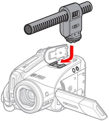 You can attach to the advanced accessory shoe on the camcorder an optional DM-50 Directional Stereo Microphone or any commercially available microphone compatible with the advanced accessory shoe. For details, refer to the instruction manual of the microphone.