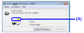 You can also display the printer status monitor by clicking Canon XXX Printer (where "XXX" is your machine's name) which appears on the taskbar during printing.