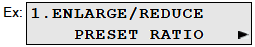 You can select one of the preset ratios to reduce or enlarge copies. Press the or