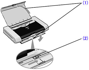 (1) Open the Paper Support and Paper Output Slot Cover.