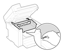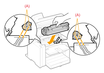 Fit the protrusions (A) on each side of the toner cartridge into the guides located on each side of the machine, and then slide the toner cartridge into the machine until the toner cartridge meets the back of the machine.