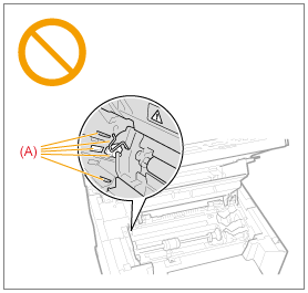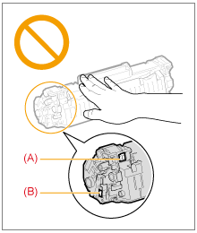 Do not touch the toner cartridge memory (A) or the electrical contacts (B).