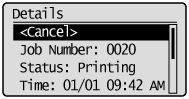 ] to select a job to be checked or canceled, and then press [OK].