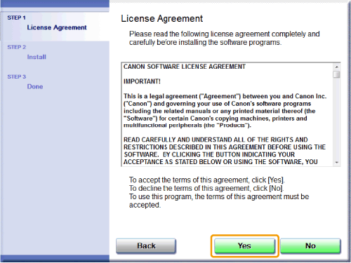 5. Read the License Agreement and click [Yes].