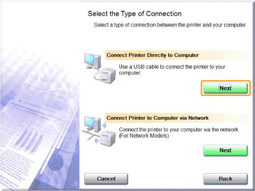 Click [Next] for [Connect Printer Directly to Computer].