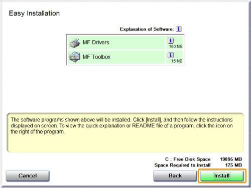 Installing the MF Driver and MF ToolboxInstalling using [Easy Installation]