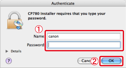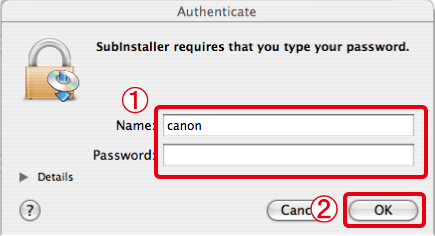 12. If the following screen appears, enter the name and password set for your Macintosh.