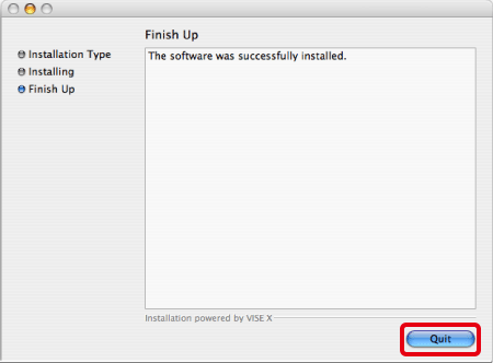 16. The following screen appears. Click [Quit].