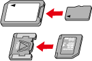 For memory cards requiring an adapter, be sure to first insert the memory card into the adapter before inserting the adapter into the appropriate card slot. If you insert the memory card into a card slot without first inserting it into an adapter, you may not be able to remove the memory card from the printer.