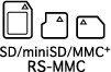 | SD Memory Card miniSD Card SDHC Memory Card miniSDHC Card MultiMediaCard MMCplus Card HC MMCplus Card MMCmobile Card RS-MMC Card*1 | ||