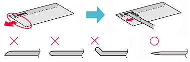 The envelopes may jam in the machine if they are not flat or the edges are not aligned. Make sure that no curl or puff exceeds 0.1 inches / 3 mm.