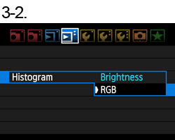 3-1. Turn the ⋖Main Dial⋗ to select ⋖ ⋗ tab, and turn the ⋖Quick Control Dial⋗ to select [histogram].