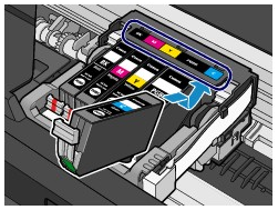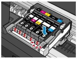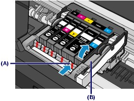 (Push) on the ink tank until the ink tank snaps firmly into place.