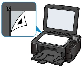 Load the print head alignment sheet WITH THE PRINTED SIDE FACING DOWN and align the mark on the upper left corner of the sheet with the alignment mark