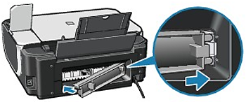 Press firmly on the Rear Cover on the rear of the machine until it is locked in place. If the Rear Cover is not reattached properly, paper may not be fed properly and cause paper jams.