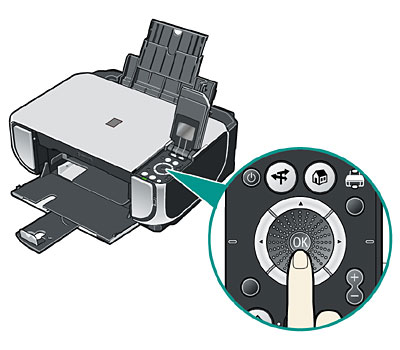 When the ink tanks are initially installed in the machine, the message "Perform head alignment if colors/lines are misaligned." is displayed on the LCD. After the message is displayed, press the OK button on the operation panel to complete the machine setup.