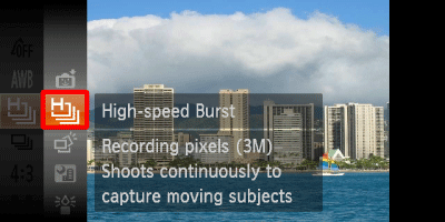 Operate the ⋖directional buttons⋗ up or down to select [High-speed Burst] ().