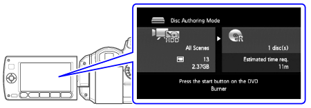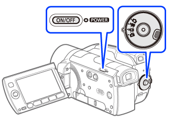 1. Turn on the camcorder and set it to ⋖ ⋗ mode to create high-definition discs of your movies or ⋖