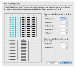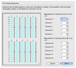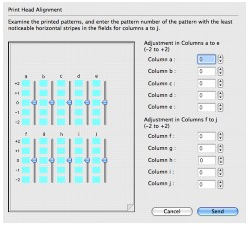 (4) Look at the printout, select the pattern numbers in columns H to Q respectively that have the least noticeable streaks, then click Send.