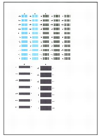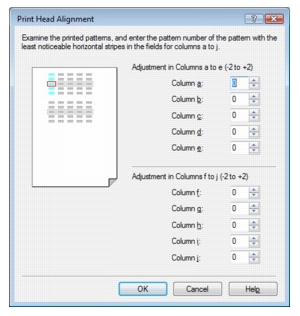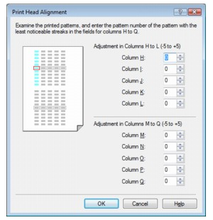 (4) Look at the printout, select the pattern numbers in columns H to Q respectively that have the least noticeable streaks, then click OK.